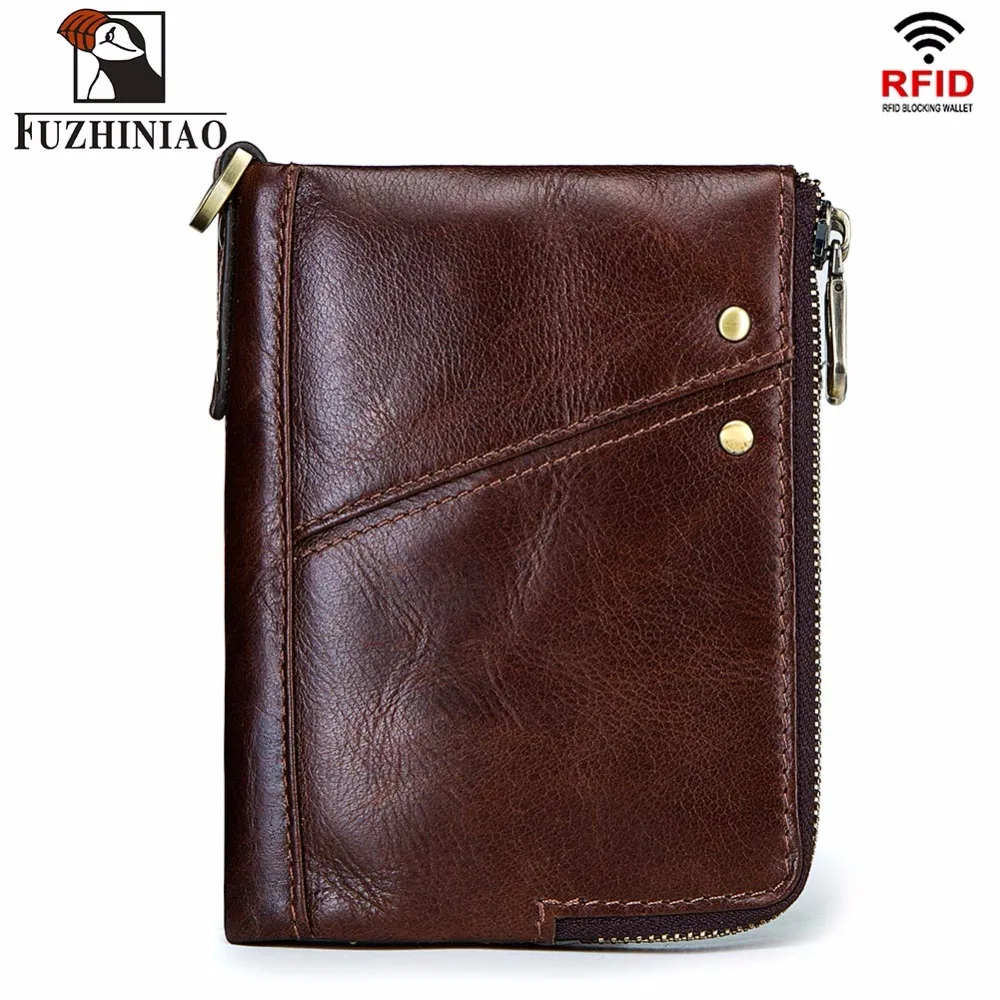 Free shipping FUZHINIAO Cow Genuine Leather Wallet Men Coin Purse Small Male Walet Portomonee Rfid PORTFOLIO Vall