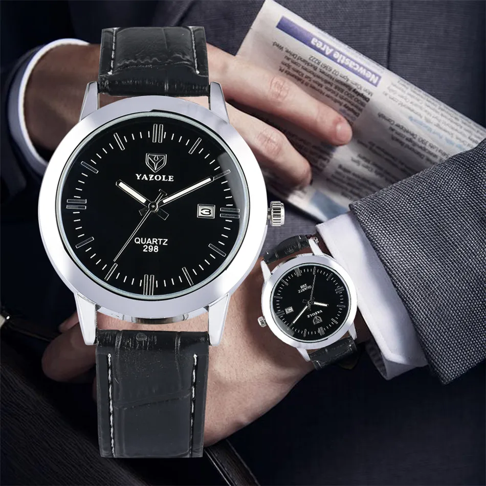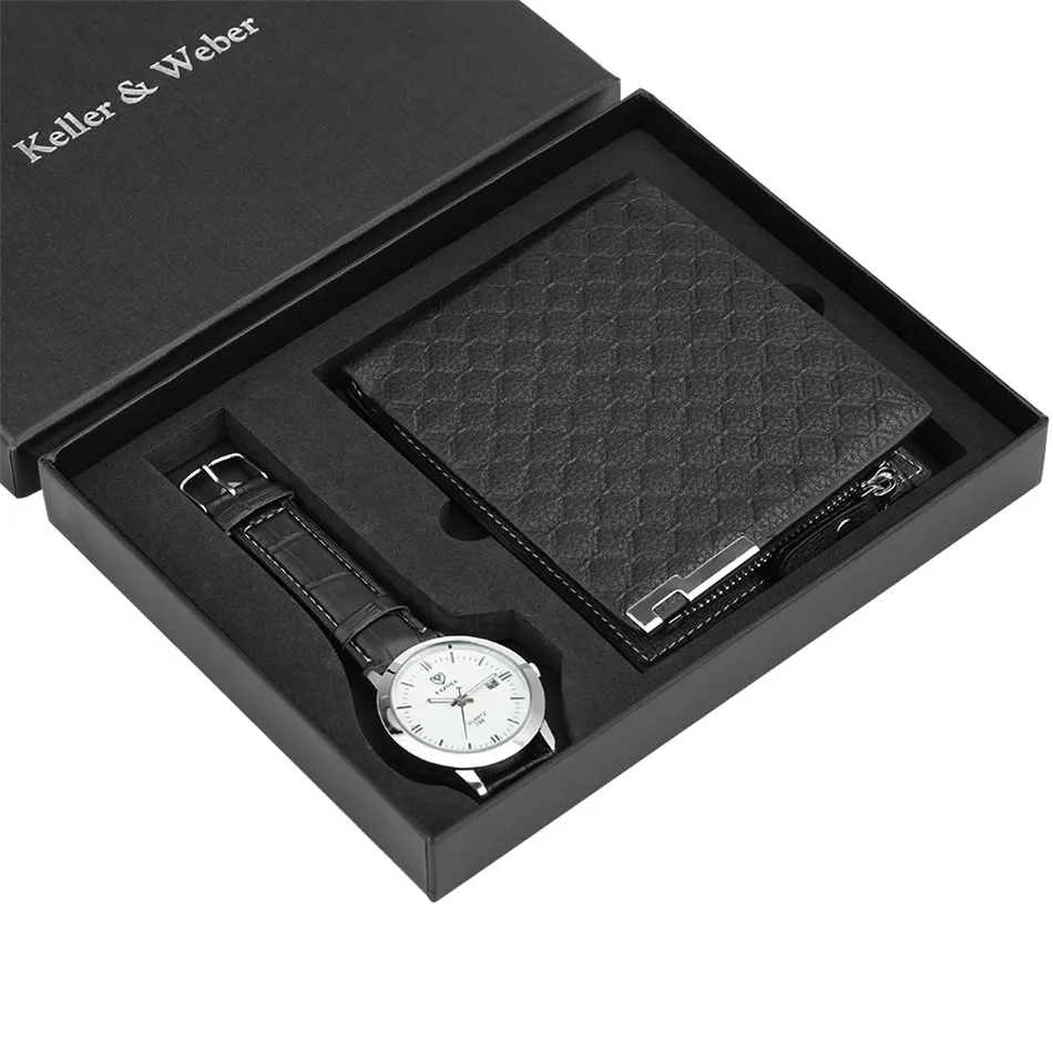 Best Product Valentines Gift Men Watch Purse Set Calendar Mens Watches Quartz Genuine Leather Wristwatch Wallet