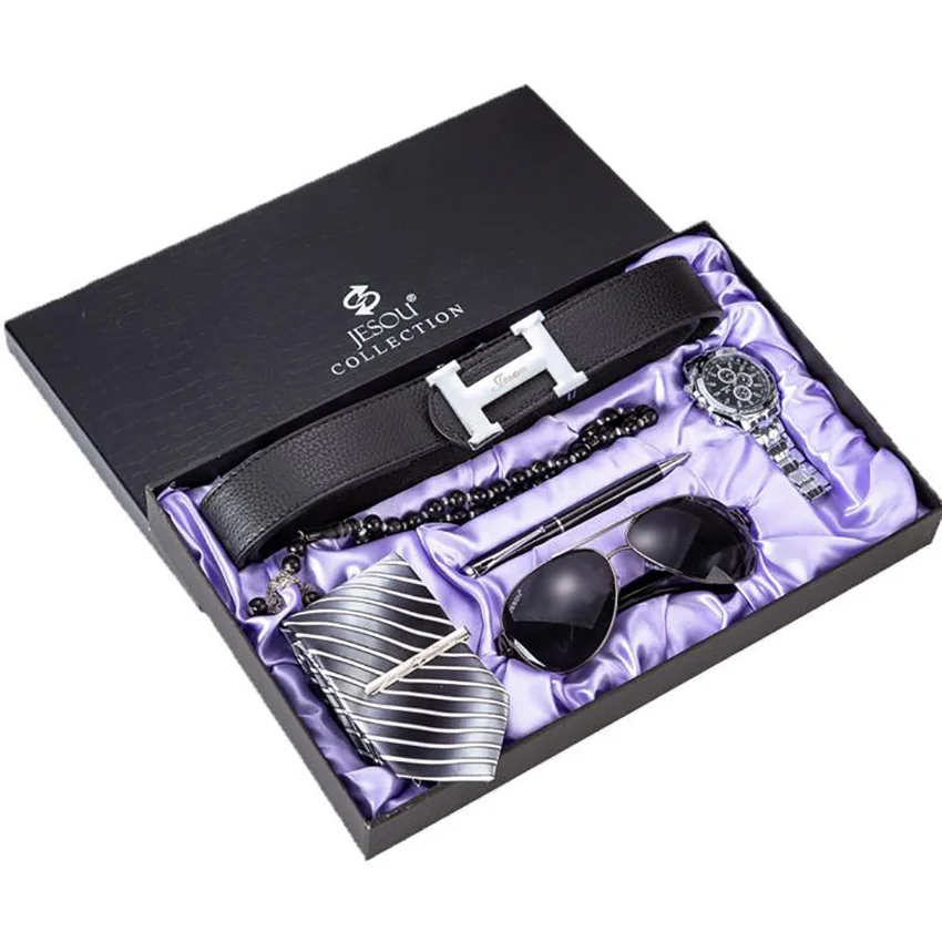 Good Price men's business gift set Leather Band Watch boy Men Wallets Belt tie Mens birthday surprise quartz w