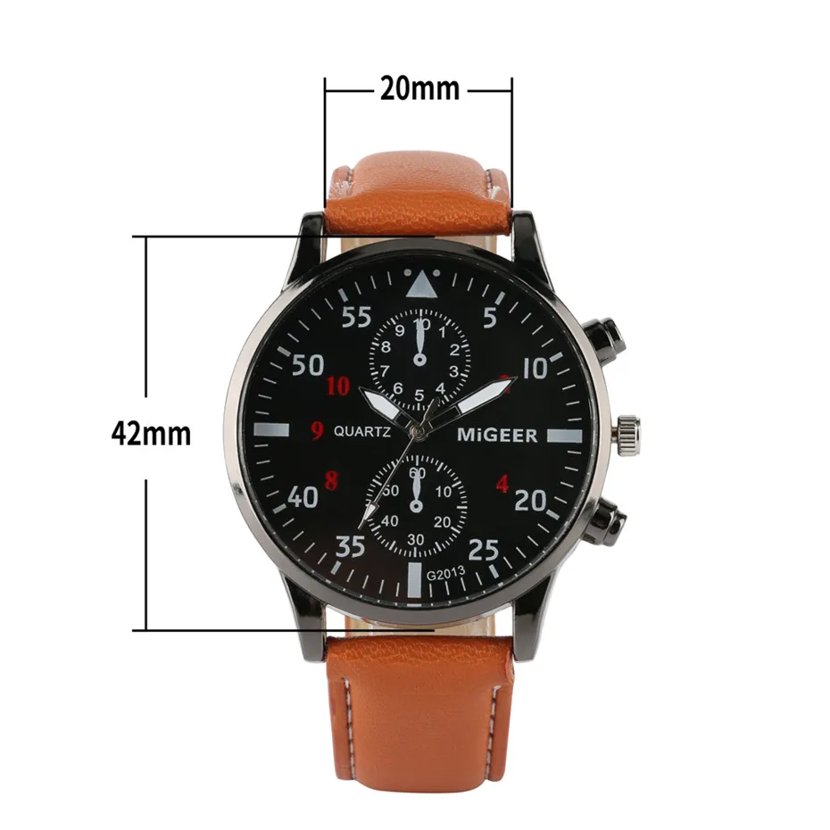 Best Product High Quality Simple Design Men Watch Leather Band Quartz Wrist Watch for Boy Boyfriend Wallet Gift